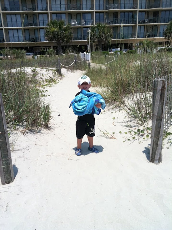 Sunday we stayed all day until supper time. It makes Josh and I a little more tired but right now in this phase in our life's it just works better to leave around 7pm so both kids will sleep. The funny thing was WK stayed awake for and hour and a half of the drive. Thankfully she was happy most of the time. We gave the kids baths, ate dinner at the condo and the packed up and headed home. It is nice though that we had another full day at the beach. We spent some time at the pool Sunday and both kids loved it. WK swam and just kicked her little legs the entire time. Wade loves the pool and loved swimming with his puddle jumper. He is a little more timid in the water this summer than last summer. He was so funny; he was playing with this little boy and I told him to watch the little boy put his head under the water and swim. Well Wade looked at me and said "I am just a little too small to do that, he is probably 9 and I am only 3." After he said that the little boy's grandmother said "how did he know that?" She said he is 9 years old!! We were both amazed that he guessed that; I told her it is scary...I feel like he is smarter than I am!! I bought him some school stuff to keep him busy over the summer and one of the books is preparing for Kindergarten and he can already do half of the book. He loves doing "school" stuff and learing new things. He cannot be my child :)