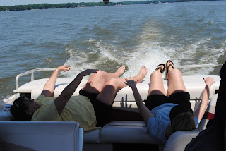 We grilled out, rode the boat, spent time with family and relaxed!! WK is following in her brother's footsteps because she LOVED the golf cart. If we were not riding on it she was at least standing and playing on it. I think she liked it better than the boat. She did enjoy running back and forth on the pontoon from my dad to the front of the boat. Wade of course loves driving the boat and sits right with dad the entire time. He is actually getting pretty good at driving the golf cart. On Saturday while we were there there was a boating accident on the lake. It was so sad-a speed boat was going to fast and hit a pontoon boat. It killed a pregnant mom and her three year old son. The dad and brother were also on the boat but they were ok. Everyone was so sad for that family-such a sad tragic accident.